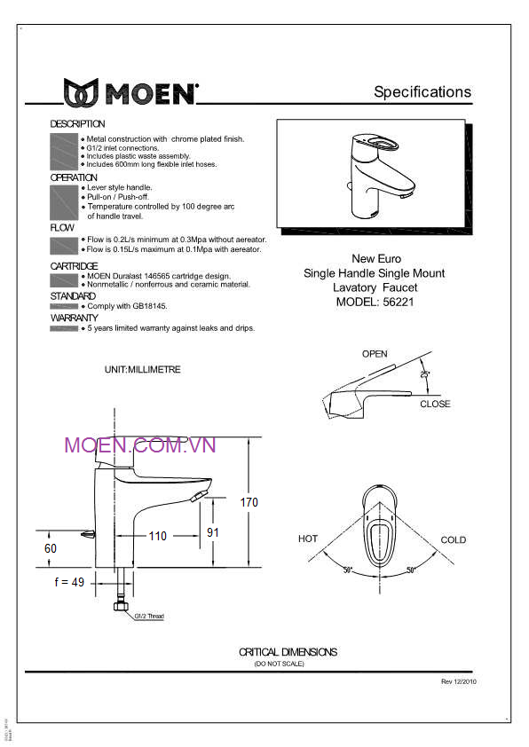 Thương hiệu: Moen Loại: Vòi chậu