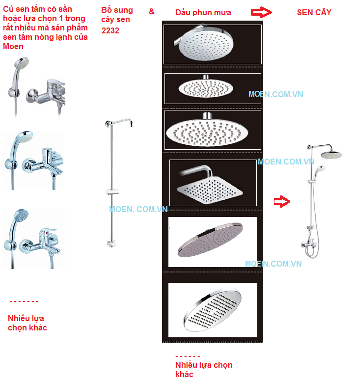 Công năng: có thể kết hợp hài hòa với củ sen tắm và đầu phun mưa bất kỳ để chuyển đổi sen thường thành sen cây.