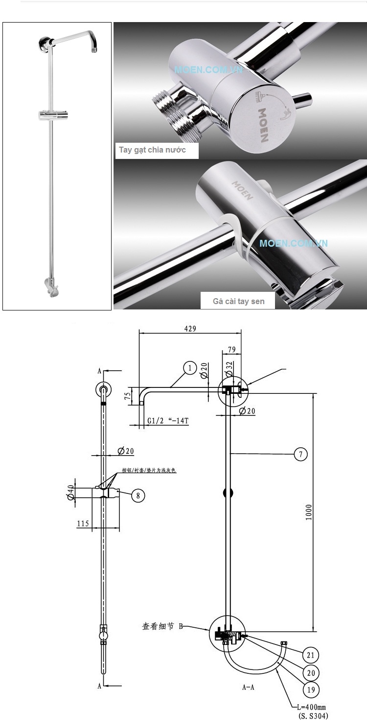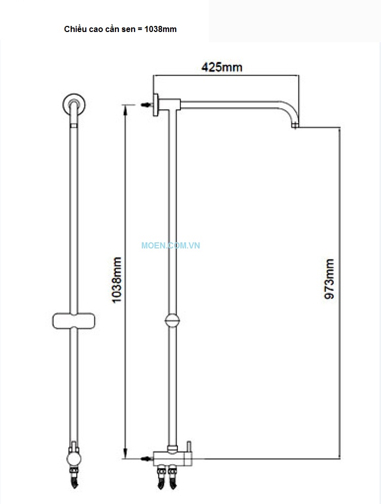 Sản phẩn bao gồm: Cần sen cây, gạt chuyển nước, gá trượt sen. chưa bao gồm củ sen tắm và đầu sen phun mưa.