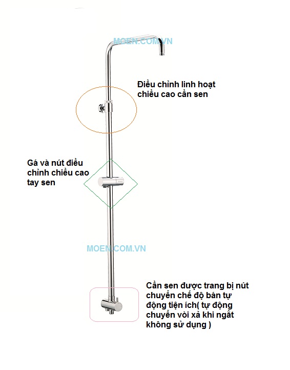 Sản phẩn bao gồm: Cần sen cây điều chỉnh chiều cao, gạt chuyển nước, gá trượt sen. chưa bao gồm củ sen tắm và đầu sen phun mưa.