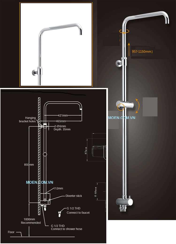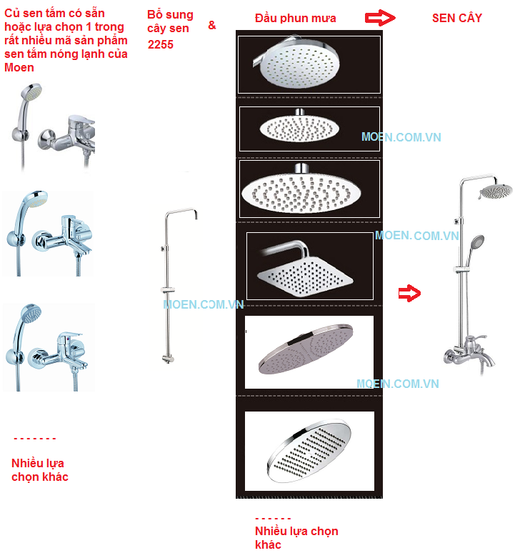 Công năng: có thể kết hợp hài hòa với củ sen tắm và đầu phun mưa bất kỳ để chuyển đổi sen thường thành sen cây.