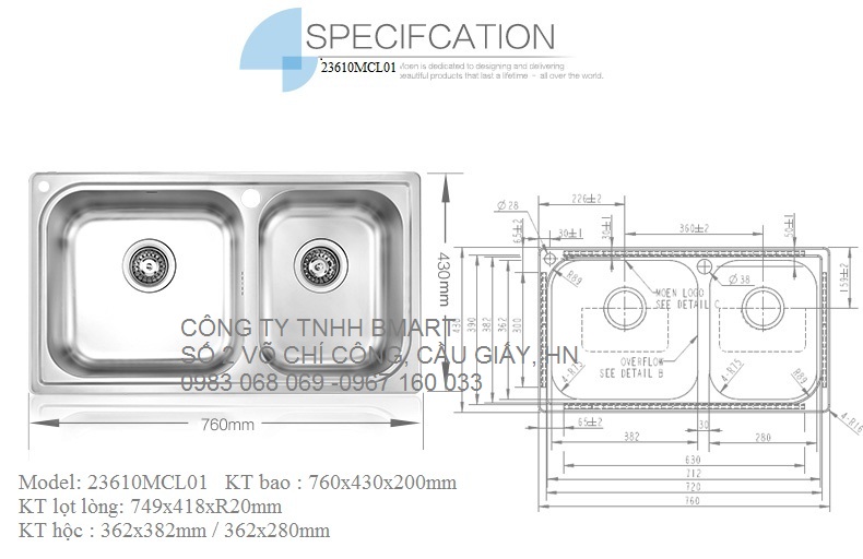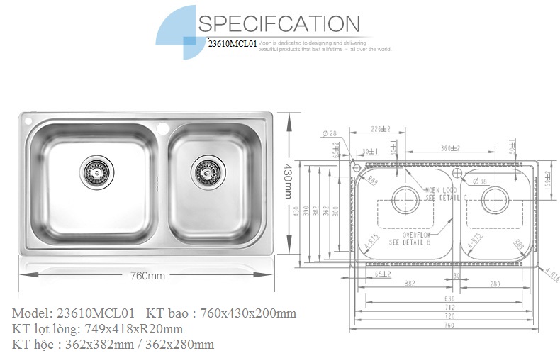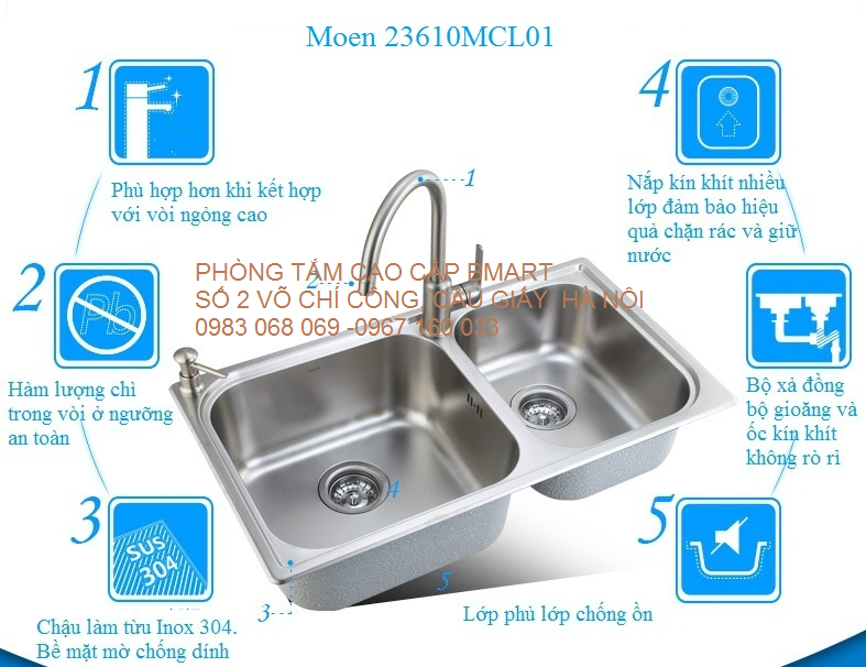 CHẬU MCL23610 CÓ THỂ KẾT HỢP VỚI RẤT NHIỀU MÃ VÒI BẾP CỦA MOEN