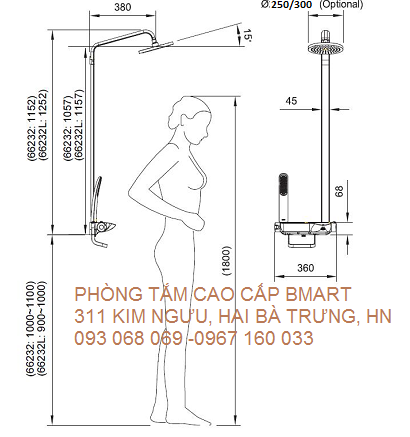 - Bao gồm đầu sen phun mưa M22080 D=254mm. H=1157mm