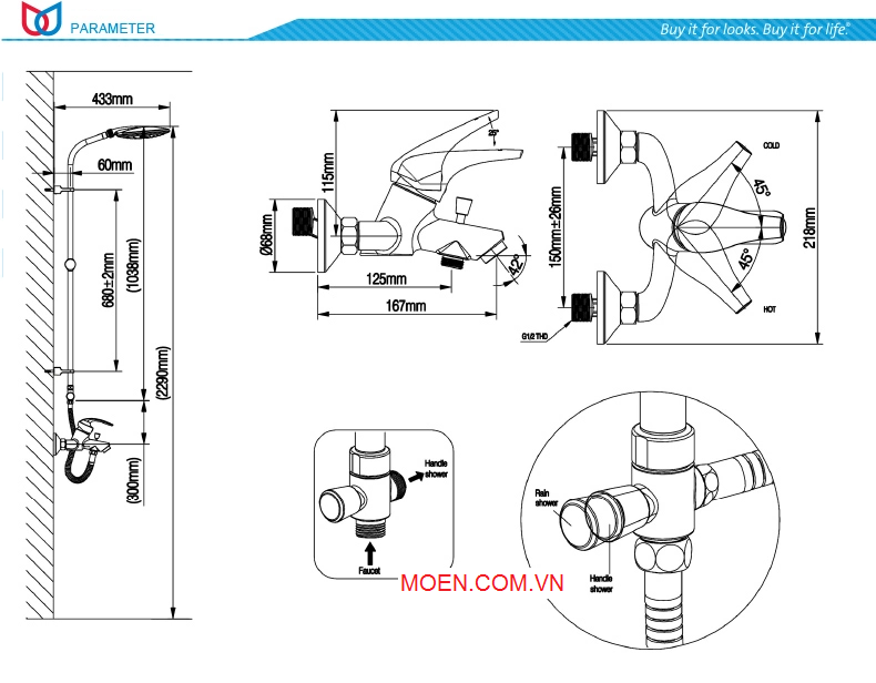 - Sen tắm được trang bị dút chuyển chế độ bán tự động tiện ích( tự động chuyển vòi xả khi ngắt không sử dụng.