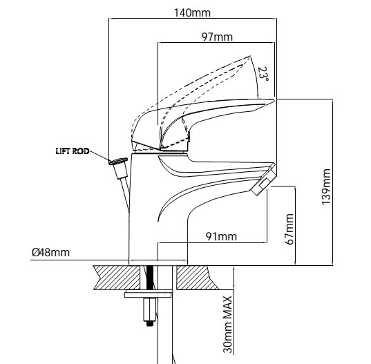 Vòi nóng lạnh gật gù điều chỉnh bằng 01 cần gạt để đóng mở và trộn nước